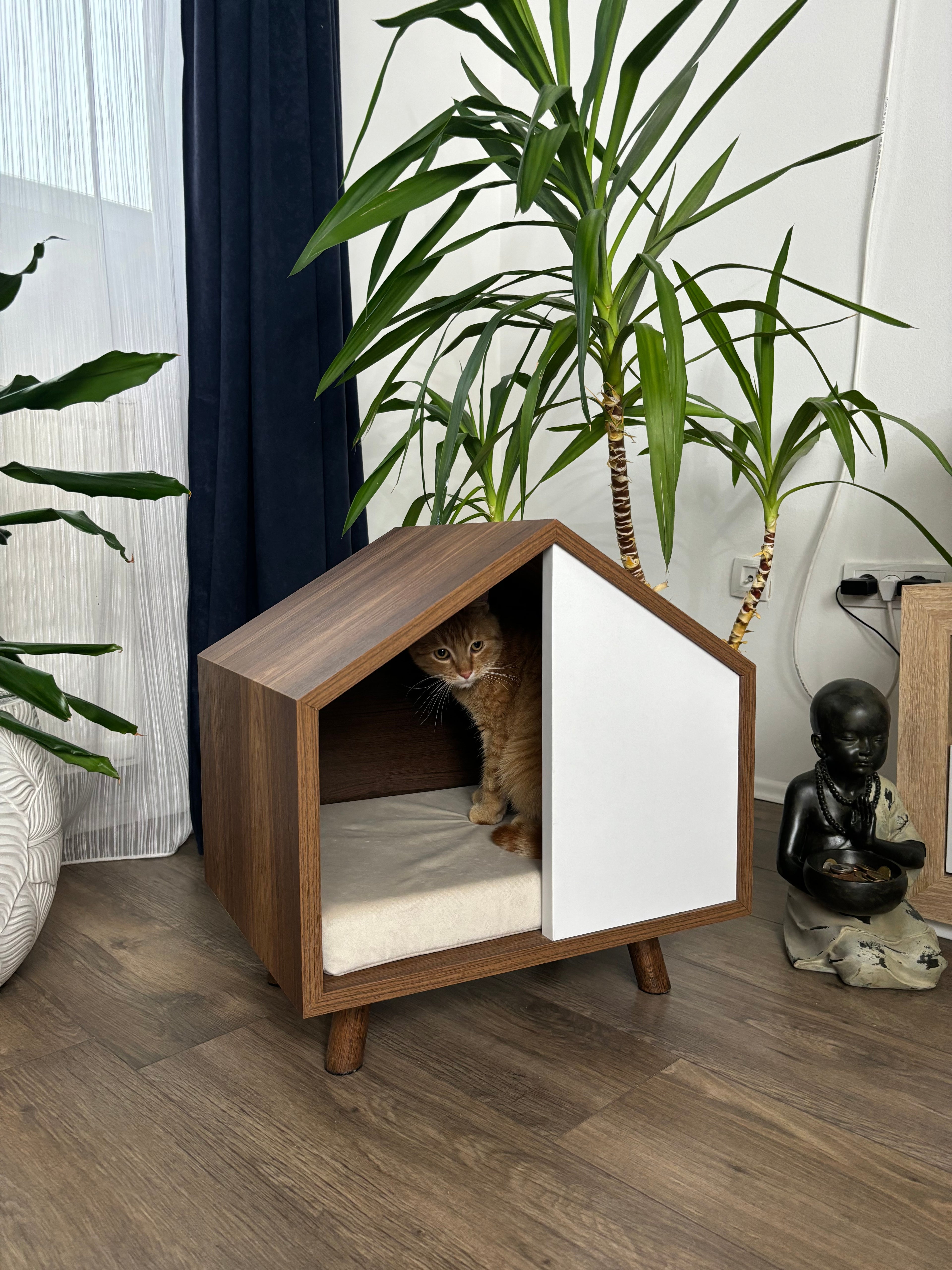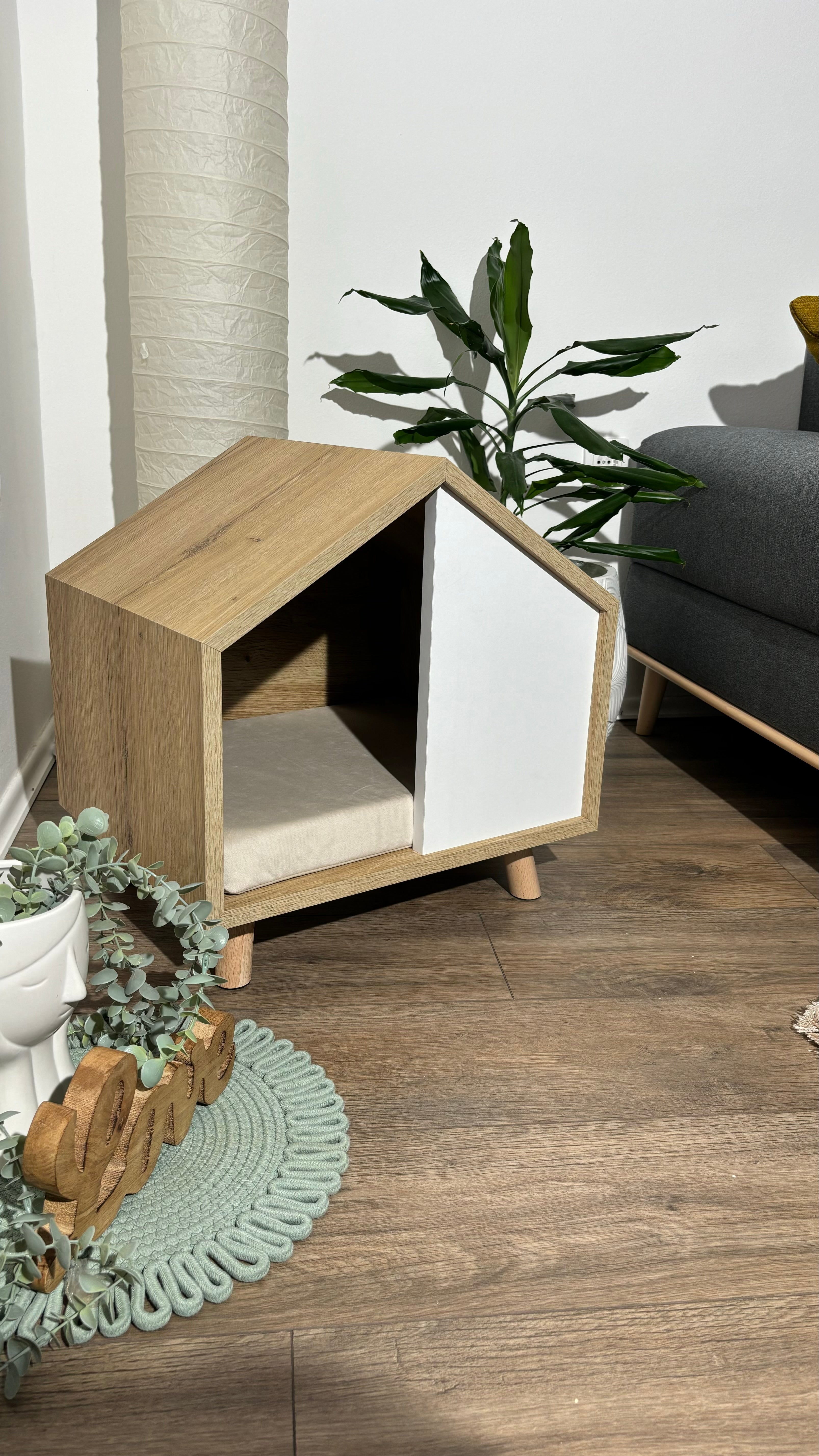Poluzatvoreni dizajn ove kućice pruža vašem ljubimcu sigurno i mirno mesto za odmor, dok vi uživate u urednijem domu. Njena kompaktna veličina omogućava lako postavljanje u bilo koji deo stana.
